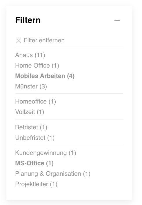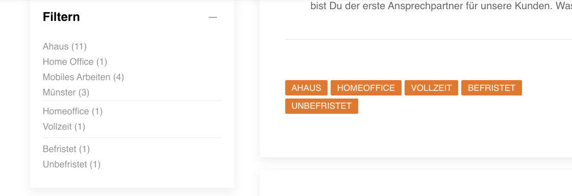Stellenangebote können nach verschiedenen Parametern (feste und freie wie Ort, Zeitmodell, Befristungen), kategorisiert und getaggt werden. So sind Ausschreibungen vom Interessenten einfacher auszufiltern.